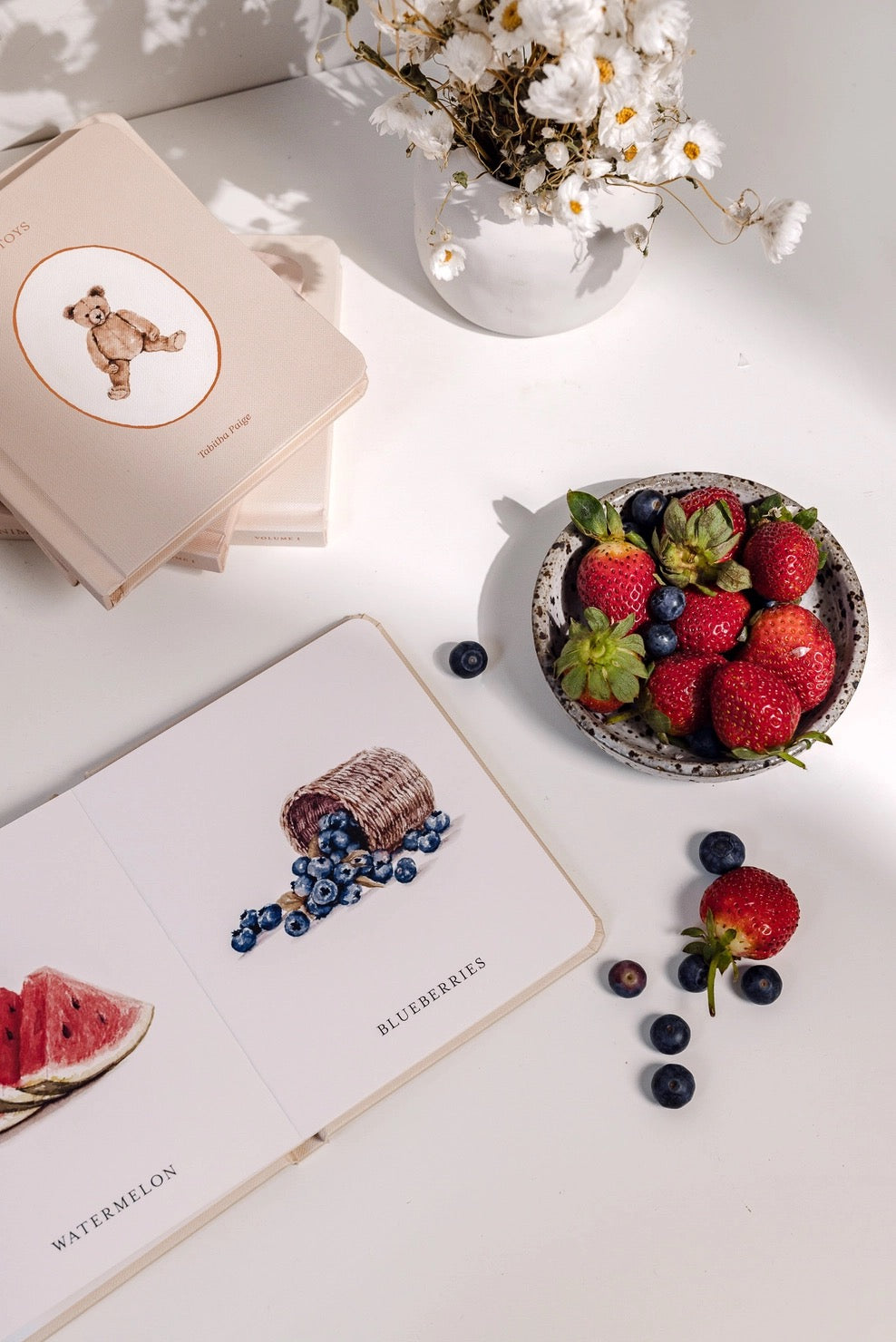 Jump-start baby's exposure to first words using this beautifully designed board book box set—the perfect gift for newborns and baby showers! Designed by a professional watercolor artist and licensed speech therapist, Our Little Library features five board books that feature charming images and foundational vocabulary that will help you build your child's vocabulary. The durable materials and small book size also make them perfect for your baby's little hands. Our Little Library includes five board books featuring foundational words from the following categories: Farm Animals Forest Animals Fruits and Veggies Toys Transportation The back of each board book in this first word series also includes a "seek and find" activity to help parents encourage their little ones to learn to identify the pictures on the page.
